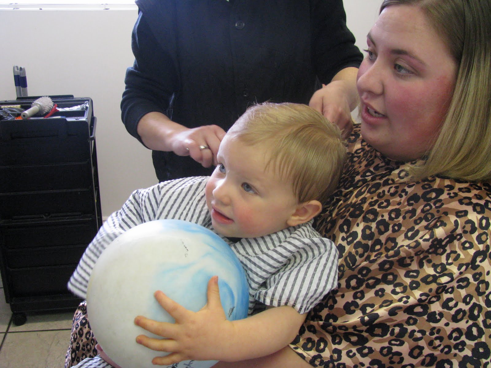 Wayne and I were a little worried how he would do when he gets his hair cut. But, we had no reason to worry. He was so good. He just sat on my lap and was more like what is going on. He is so cute!!